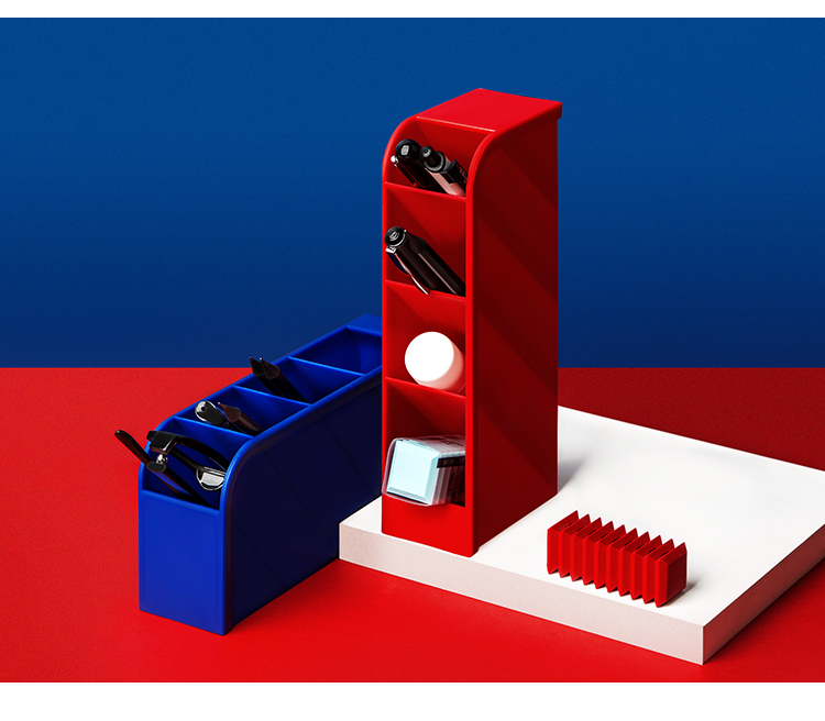フリッツペンダントを斜めに4つのテーブルに差し込み、オフィス用品の赤色FZ 21013を収納します。