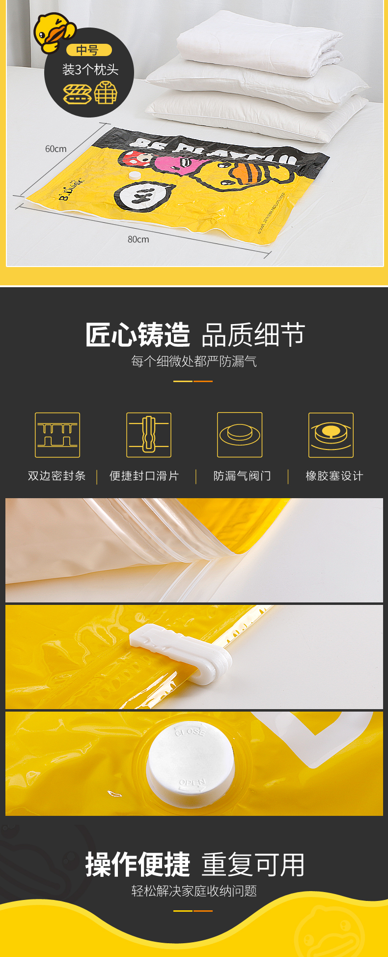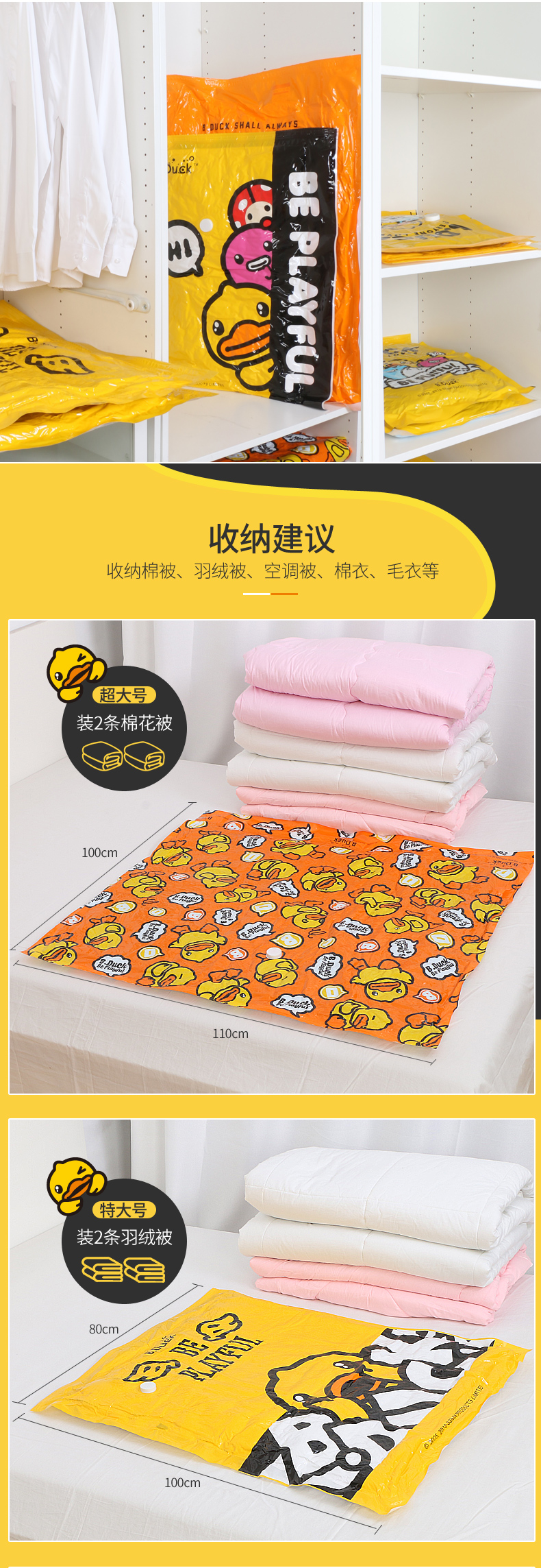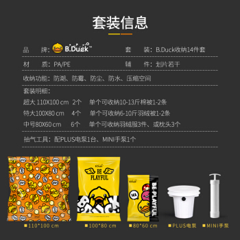 収納博士【真空圧縮袋】布団の衣類収納旅行整理袋厚のエコ材料小黄鴨2超4特6の手押しポンプ付き