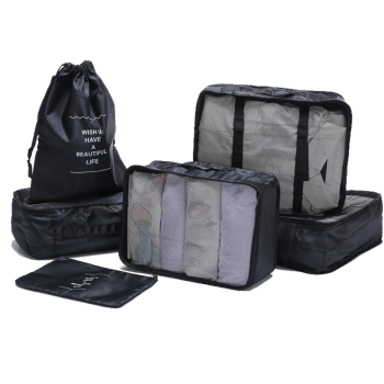 旅行収納袋スーツケース衣類整理バッグ旅行分装服袋ポータブル下着出張収納バッグGK 1グレーブルー6点セット【写真価格ブランド見積】-