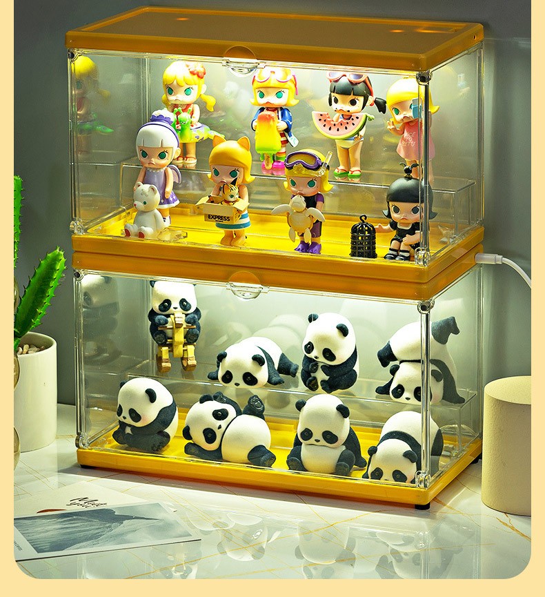 方象 盲盒收纳泡泡玛特盲盒収納ボックス展示架桌面手办収納ボックス乐高展示盒单个手办防尘盒子分层隔板收纳箱 小号白色【内置LED感应灯+高清透明+可叠加】
