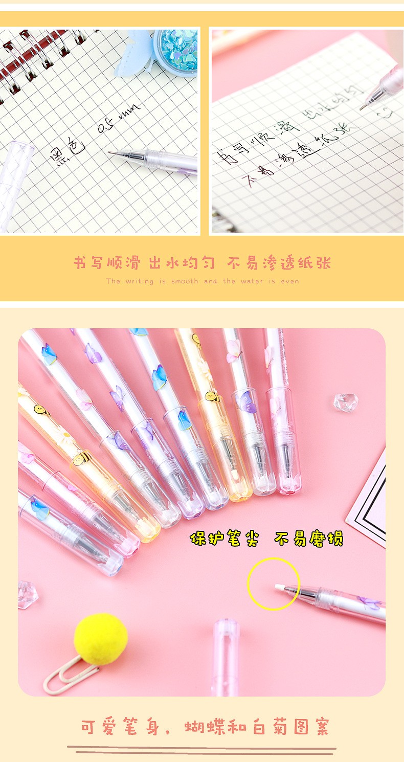 玩控 ガーリーハート闪光蝴蝶ジェルペン創造性愛らしいガーリーハートペン韩国愛らしい学生ジェルペン0.5 5支装